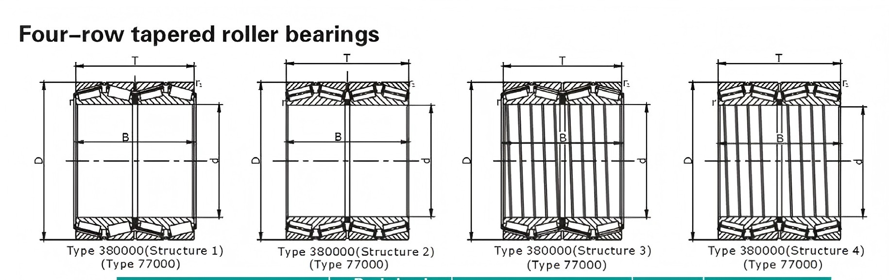Four-row tapered roller bearings are specifically designed to withstand extremely high radial loads combined with heavy axial loads in both directions, making them an ideal solution for the most demanding industrial applications. With four rows of precision-engineered tapered rollers arranged in a compact structure, these bearings provide exceptional load distribution, outstanding rigidity, and superior resistance to shock and vibration.